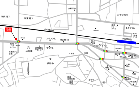 | 接 道 | 南側幅員約15m府道、東側幅員約10.8m市道に接道 | 私道負担 | なし | ||